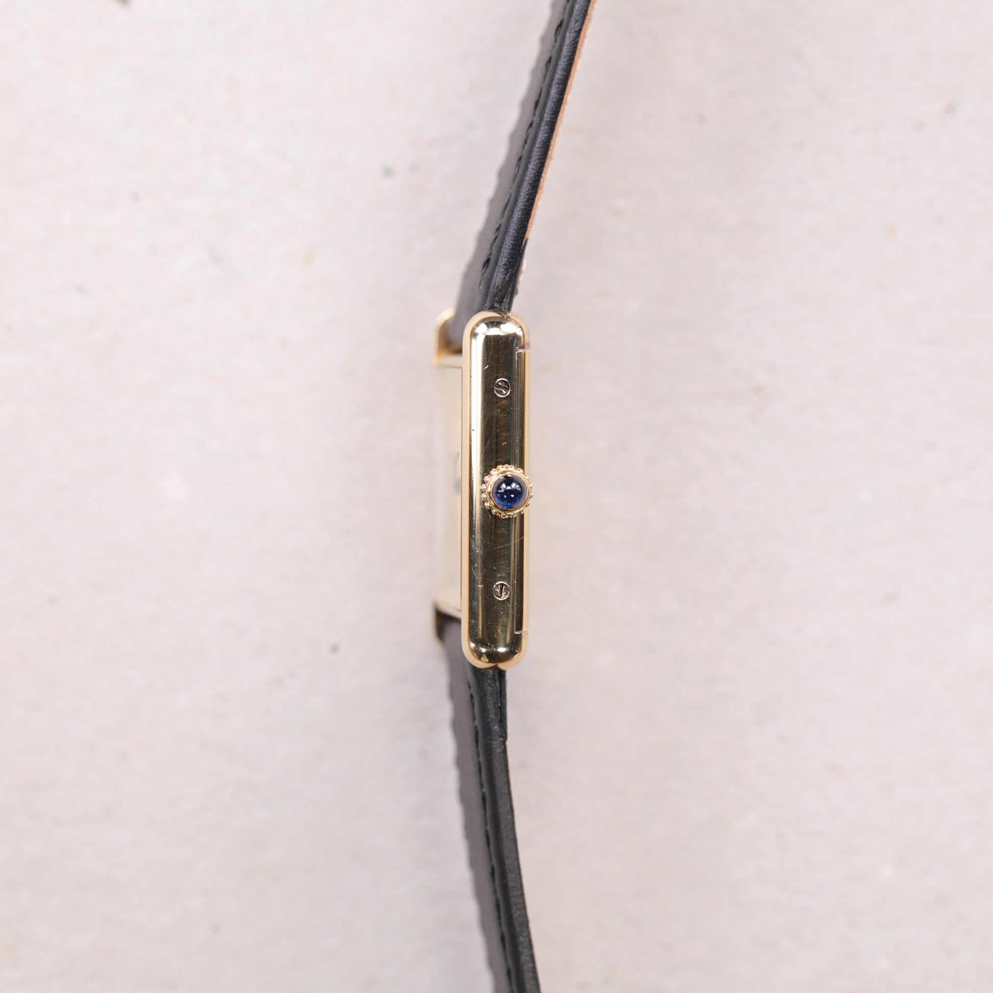 Tank Must de Cartier Circa 1980, une montre vintage emblématique alliant élégance et design intemporel. Son boîtier en vermeil abrite un superbe cadran beige minimaliste, symbole du raffinement propre à la Maison Cartier. Ce modèle, à la fois discret et sophistiqué, se distingue par ses proportions équilibrées et son confort au poignet.