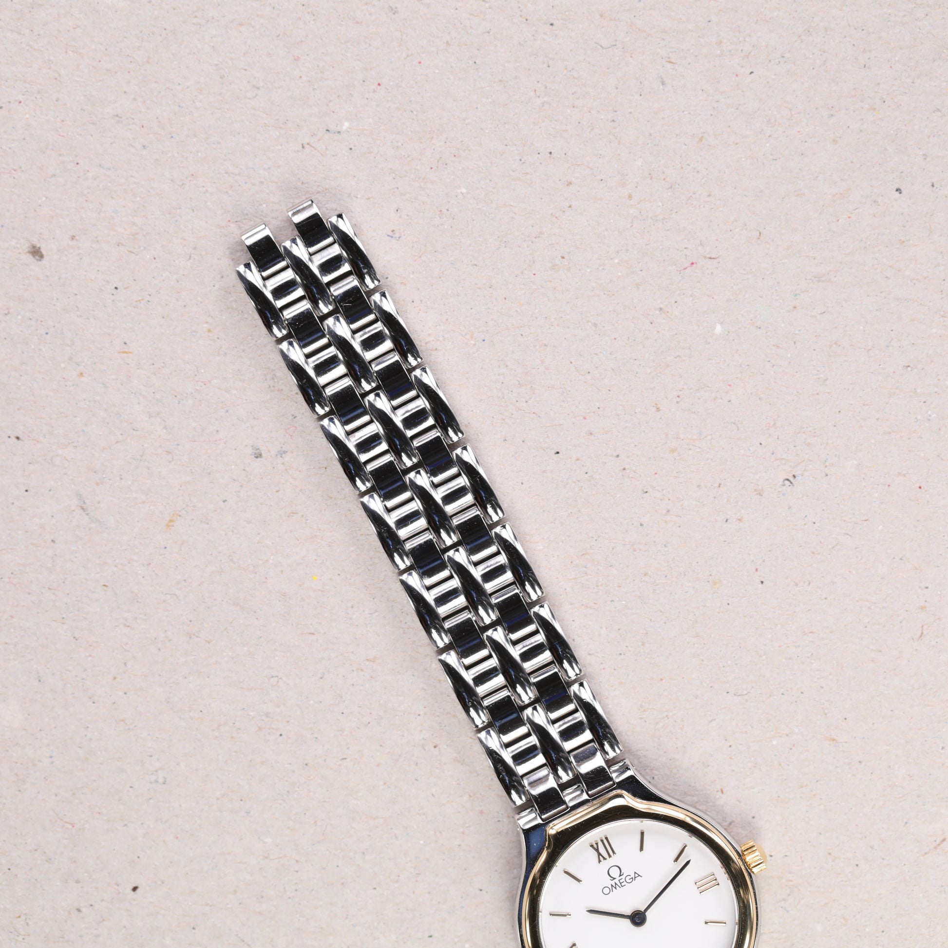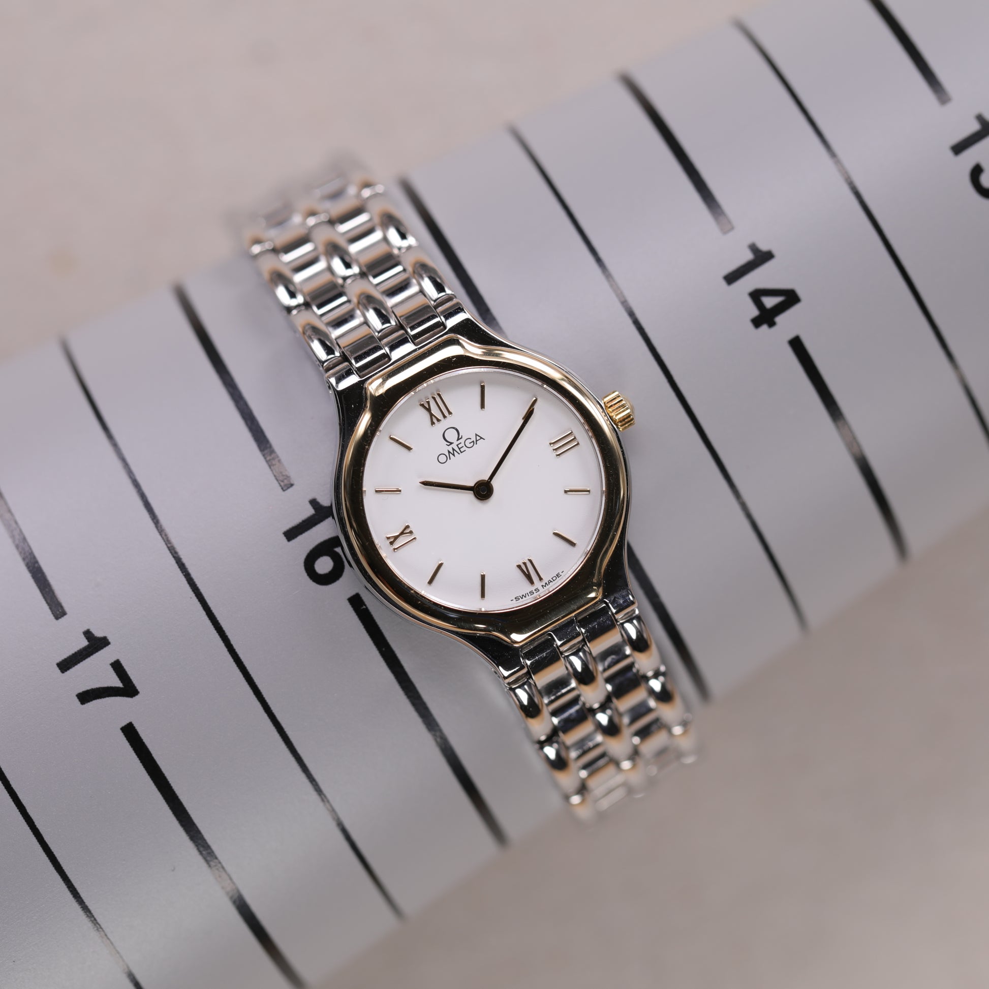 Omega 4360.23.00 | 23,5 mm | 1995 | Cadran blanc | Boite & Papiers | Or / Acier