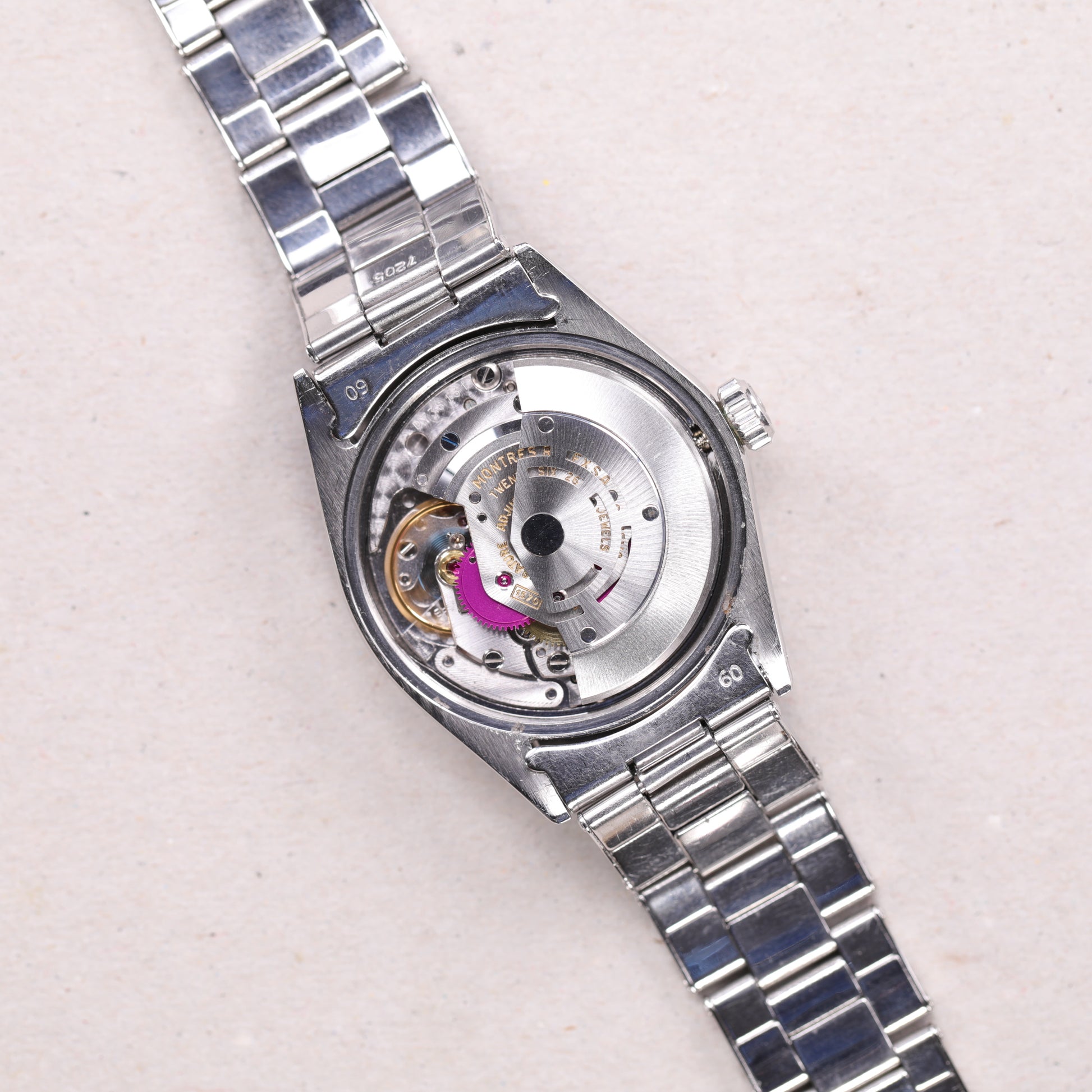 Toutes les montres sont vérifiées par notre horloger et garanties 1 an. Si une révision s'impose, des pièces et composants peuvent s'avérer nécessaires de changer en raison de leur âge. Ces derniers sont systématiquement remplacés par des pièces d'origine.